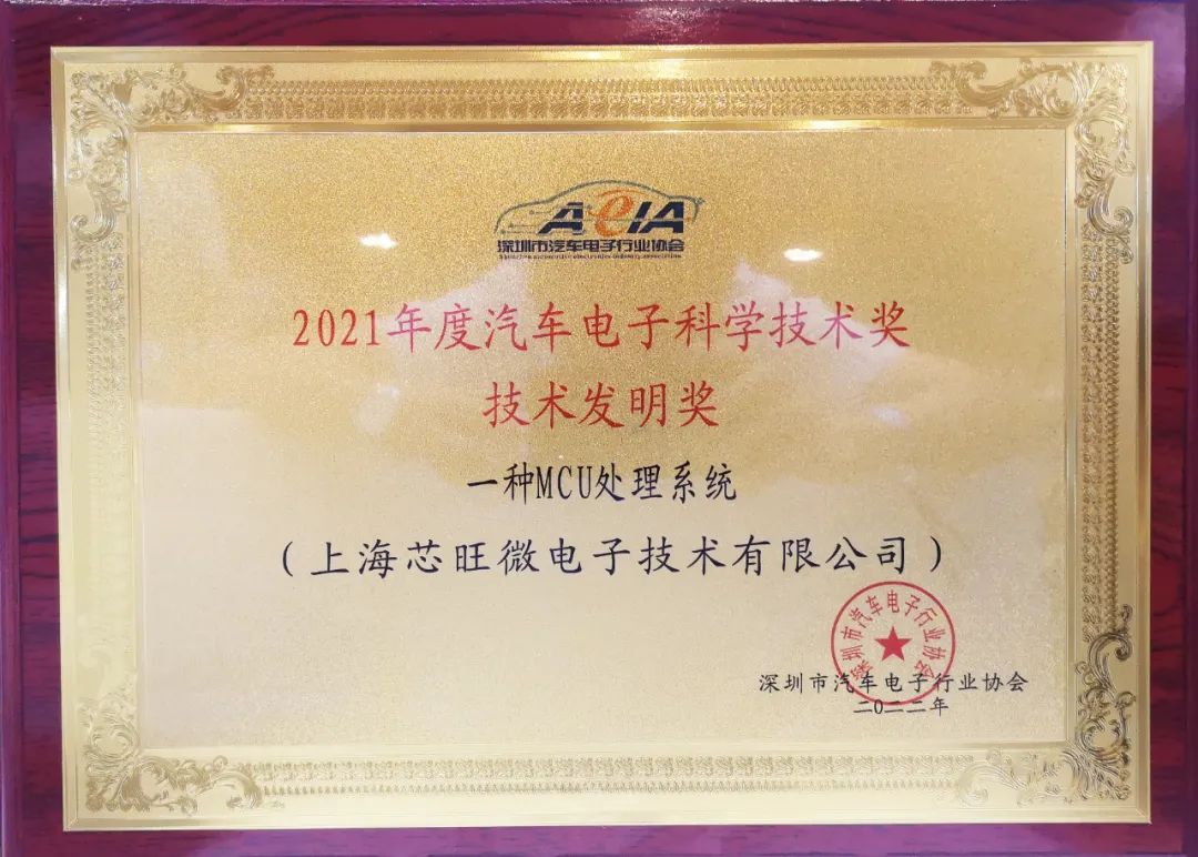 “2021年度汽车电子科学技术奖颁奖盛典”上,芯旺微电子凭借已授权发明专利的MCU处理系统,荣获2021年度汽车电子科学技术奖技术发明奖.