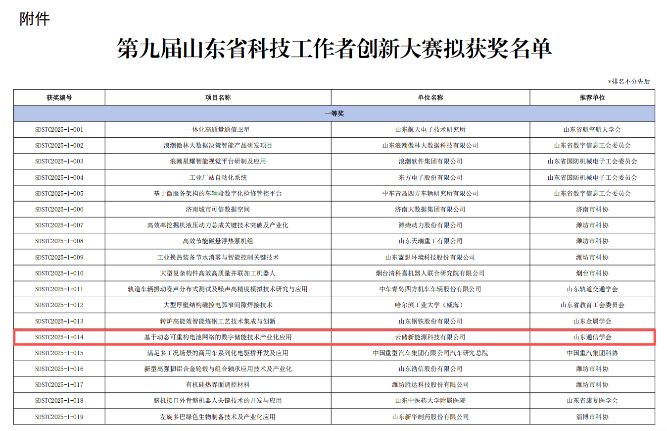 11月16日,创始人慈松作为特邀嘉宾亮相中国企业联合会培训工作委员会金牌直播栏目《对话“小巨人”》,聚焦“企业破局发展”核心议题分享前沿实践经验。同期,在第九届山东省科技工作者创新大赛中,云储新能源团队以“基于动态可重构电池网络的数字储能技术产业化应用”项目从350项申报中脱颖而出,强势斩获一等奖。