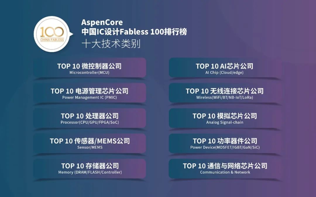 作为中国半导体业重要榜单之一的2022版China Fabless 100在“中国IC设计领袖峰会”上发布,该榜单由AspenCore分析师团队根据量化数学模型、企业公开信息、厂商调查问卷,以及一手访谈资料,精心筛选出中国IC设计行业100家综合实力和增长潜力最强的公司。